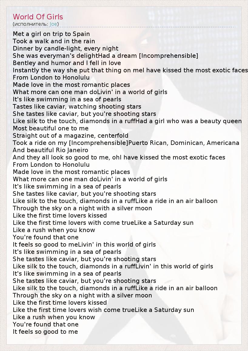 А как ты думаешь, о чем песня "World Of Girls" ?