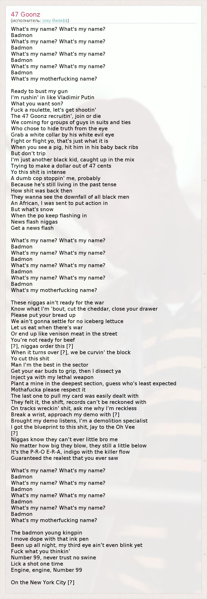 А как ты думаешь, о чем песня "47 Goonz" ?
