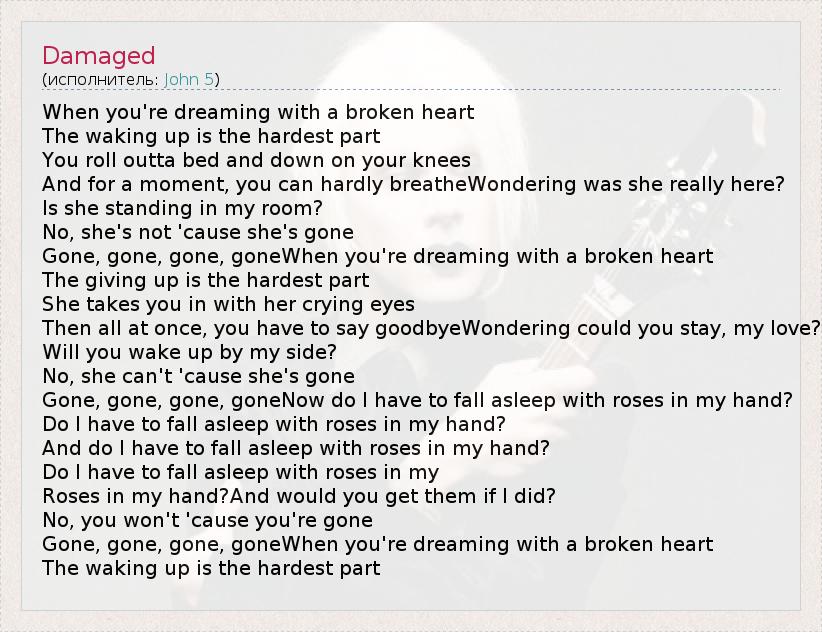 Gone, gone, gone, goneWhen you're dreaming with a broken heart