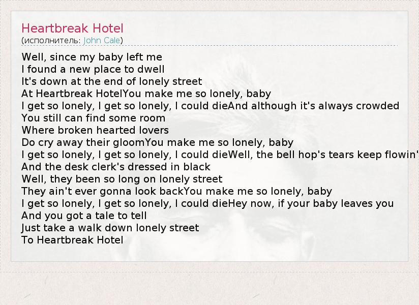А как ты думаешь, о чем песня "Heartbreak Hotel" ?