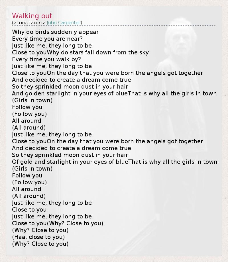 А как ты думаешь, о чем песня "Walking out" ?