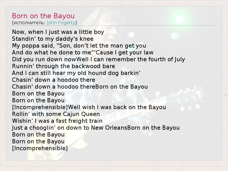 А как ты думаешь, о чем песня "Born on the Bayou" ?