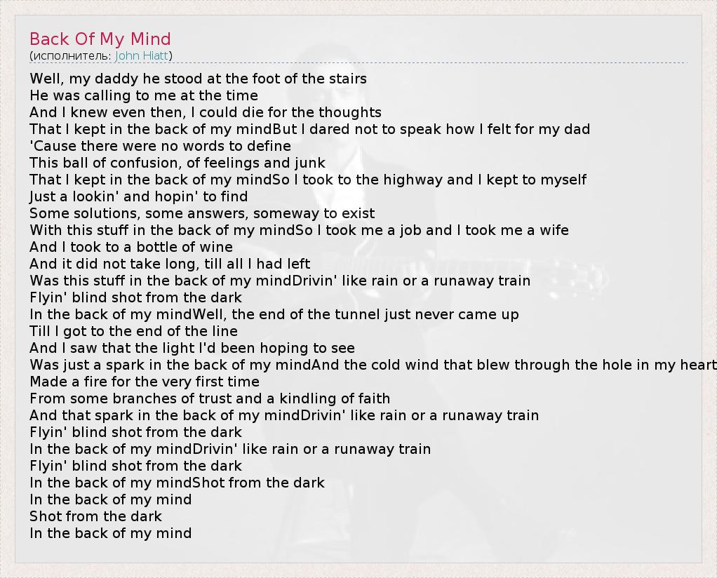 А как ты думаешь, о чем песня "Back Of My Mind" ?