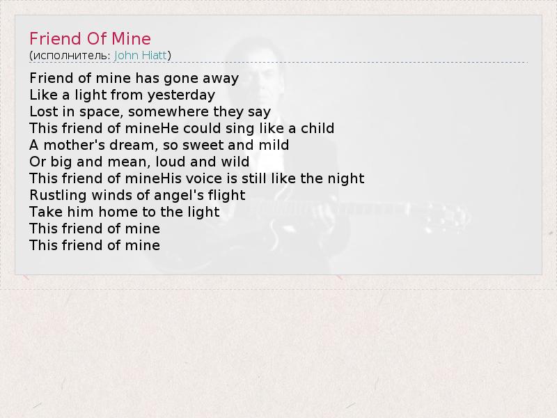 А как ты думаешь, о чем песня "Friend Of Mine" ?