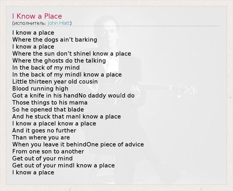 А как ты думаешь, о чем песня "I Know a Place" ?
