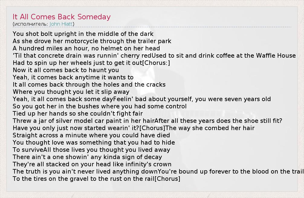 А как ты думаешь, о чем песня "It All Comes Back Someday" ?