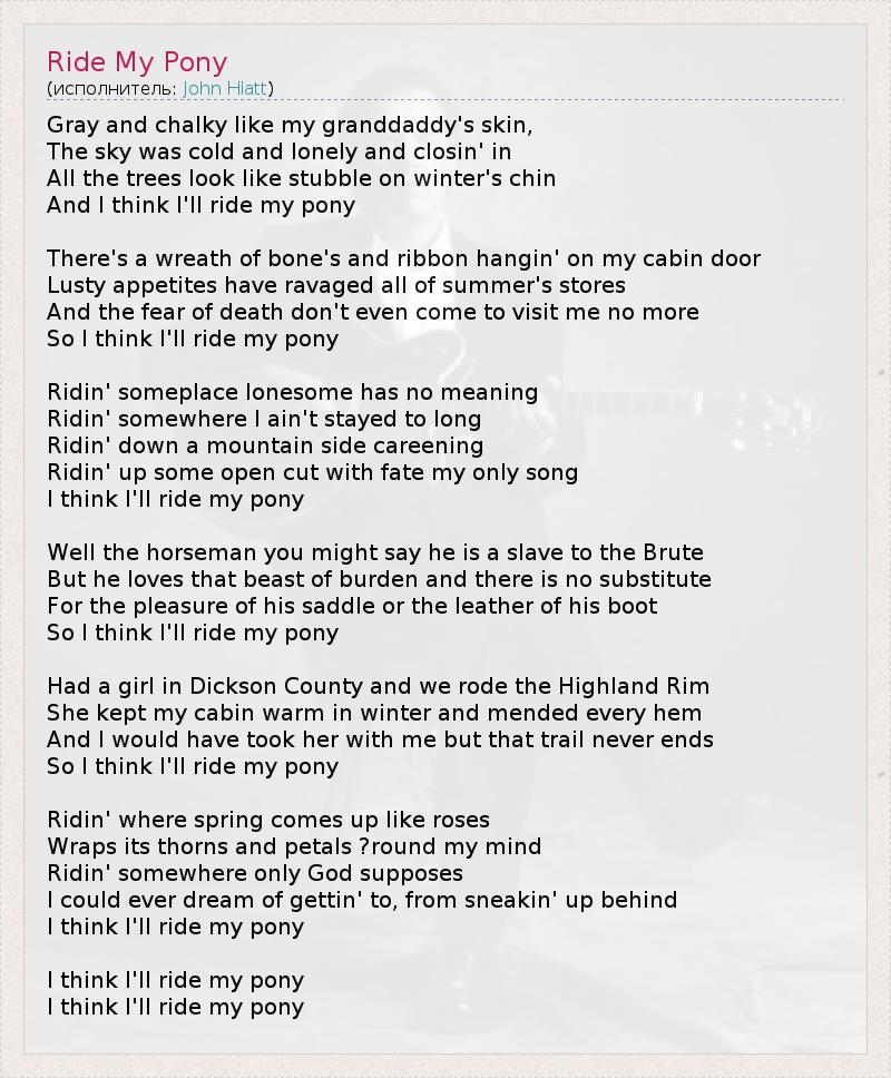 А как ты думаешь, о чем песня "Ride My Pony" ?