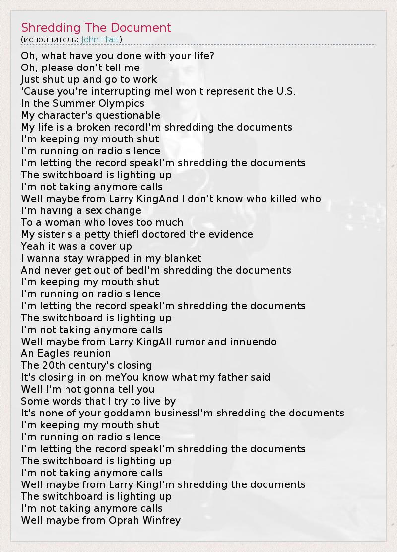 ГлавнаяИсполнителиJohn HiattShredding The Document
