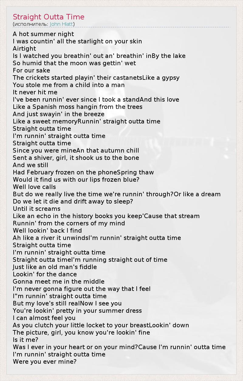 А как ты думаешь, о чем песня "Straight Outta Time" ?