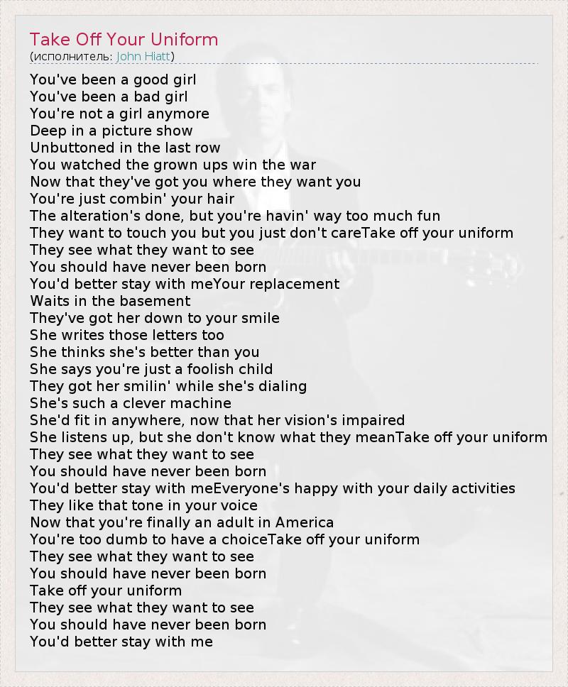 А как ты думаешь, о чем песня "Take Off Your Uniform" ?
