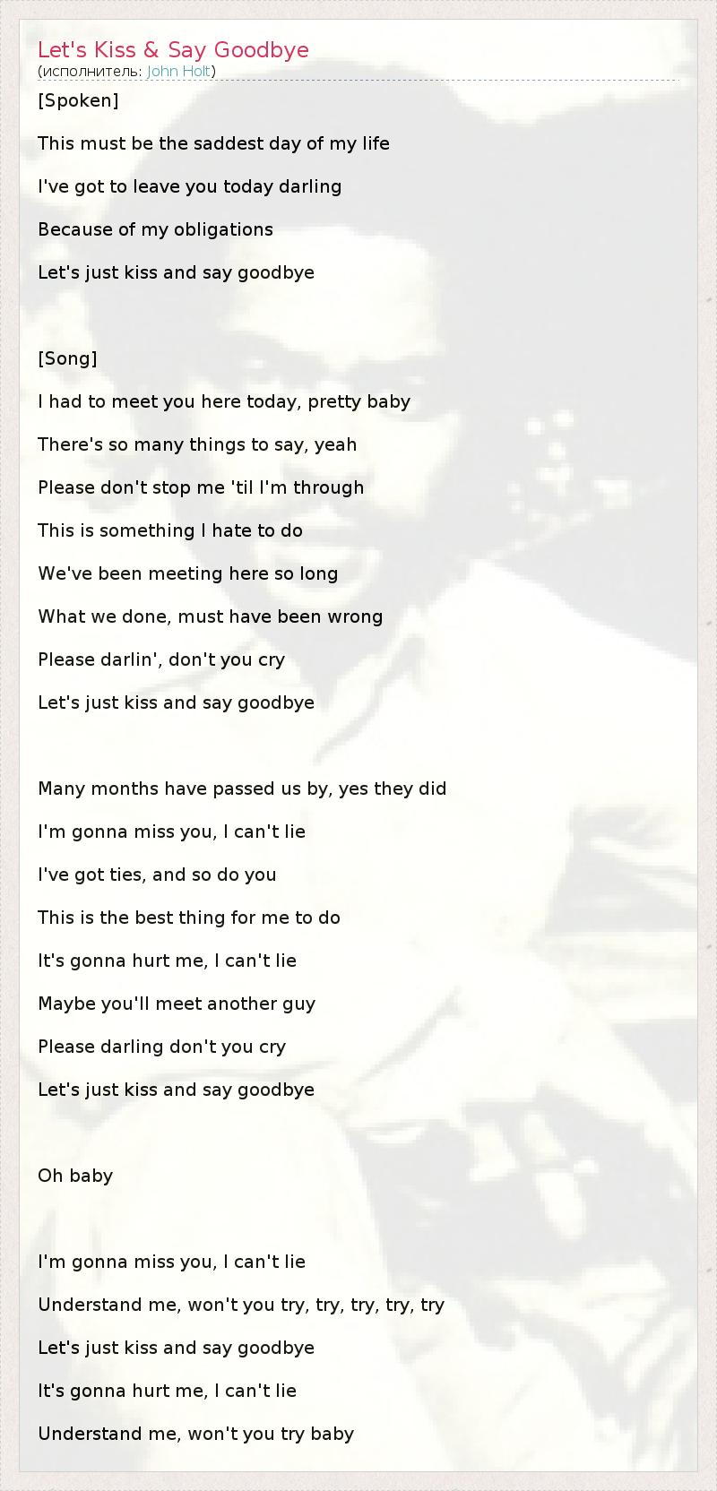 ГлавнаяИсполнителиJohn HoltLet's Kiss & Say Goodbye