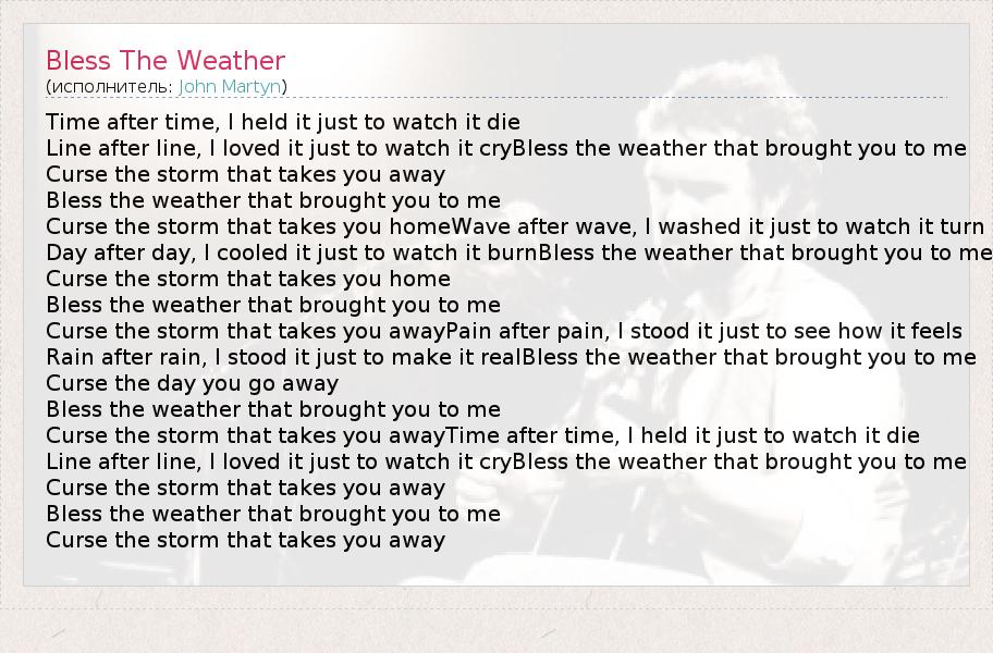 А как ты думаешь, о чем песня "Bless The Weather" ?