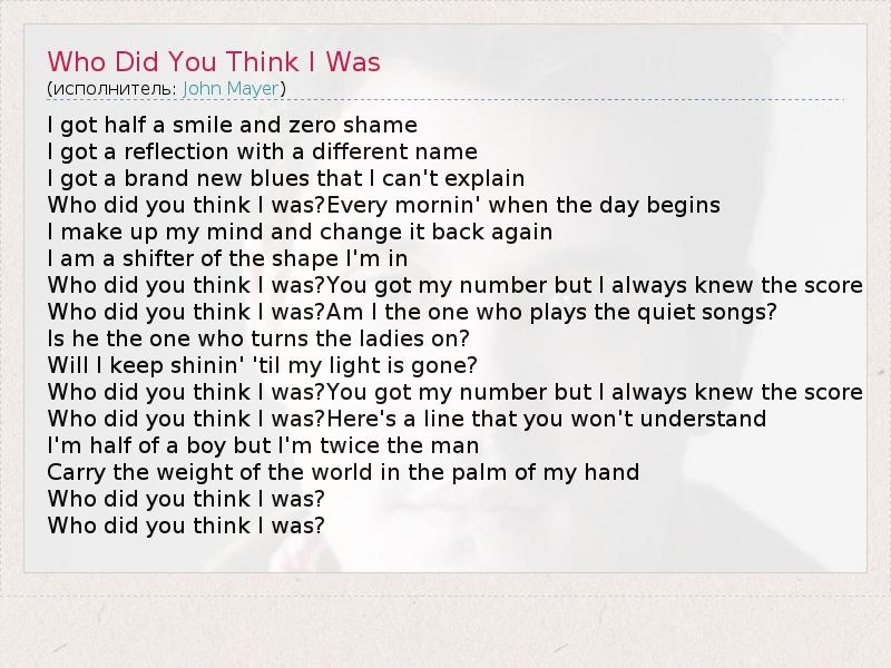 ГлавнаяИсполнителиJohn MayerWho Did You Think I Was