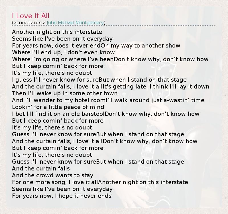 А как ты думаешь, о чем песня "I Love It All" ?