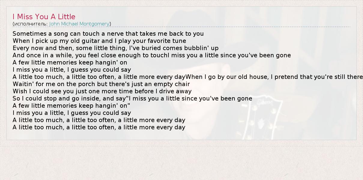 А как ты думаешь, о чем песня "I Miss You A Little" ?