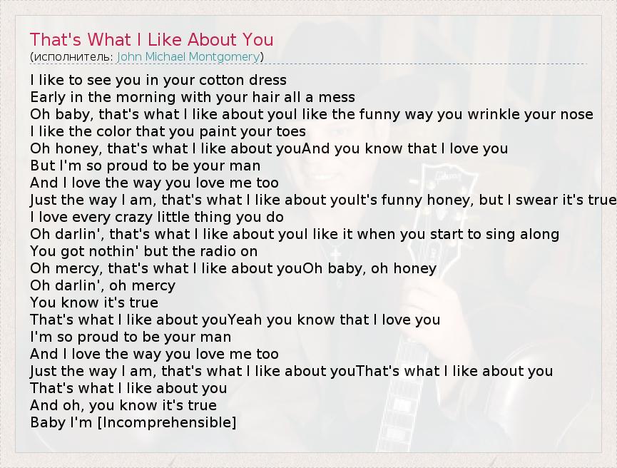 А как ты думаешь, о чем песня "That's What I Like About You" ?