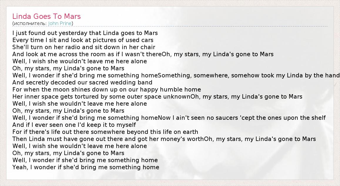 А как ты думаешь, о чем песня "Linda Goes To Mars" ?