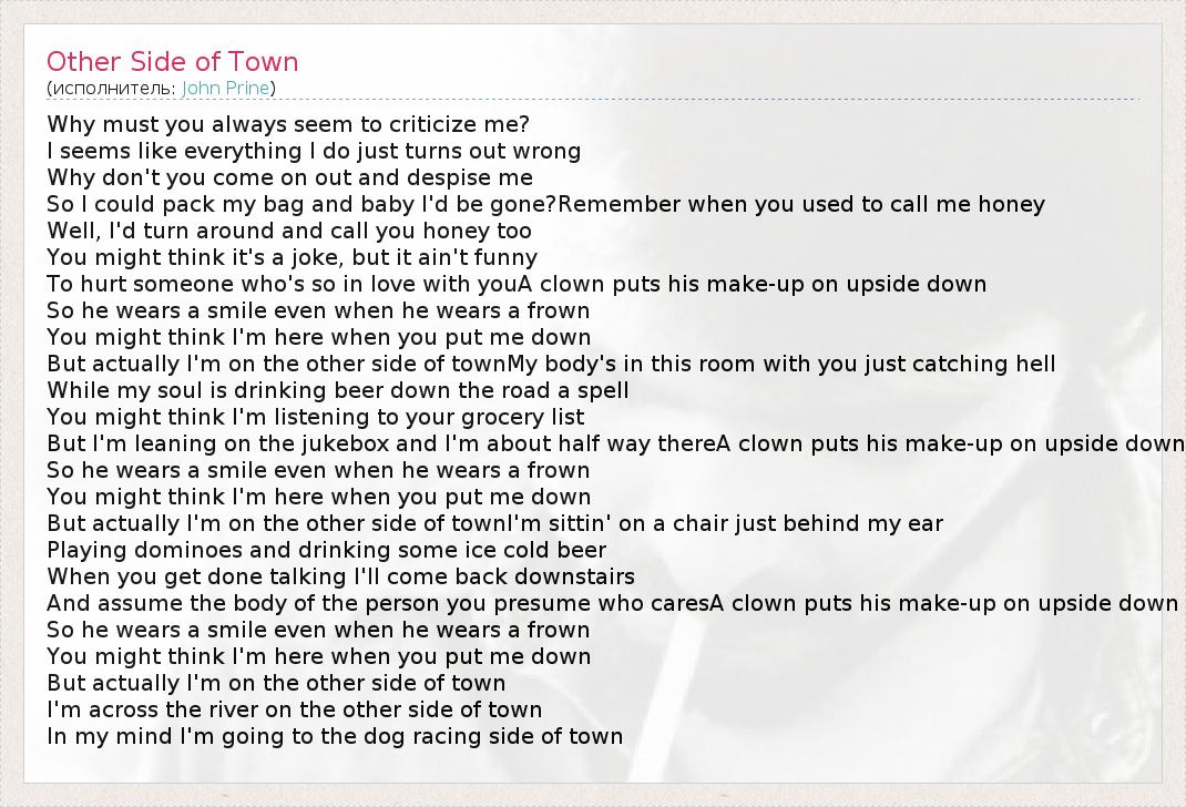 А как ты думаешь, о чем песня "Other Side of Town" ?