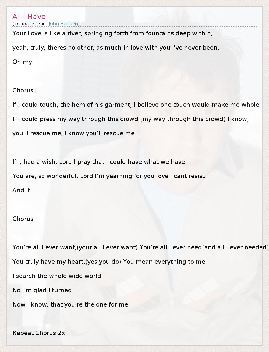 You're all I ever want,(your all i ever want) You're all I ever need(and all i ever needed)