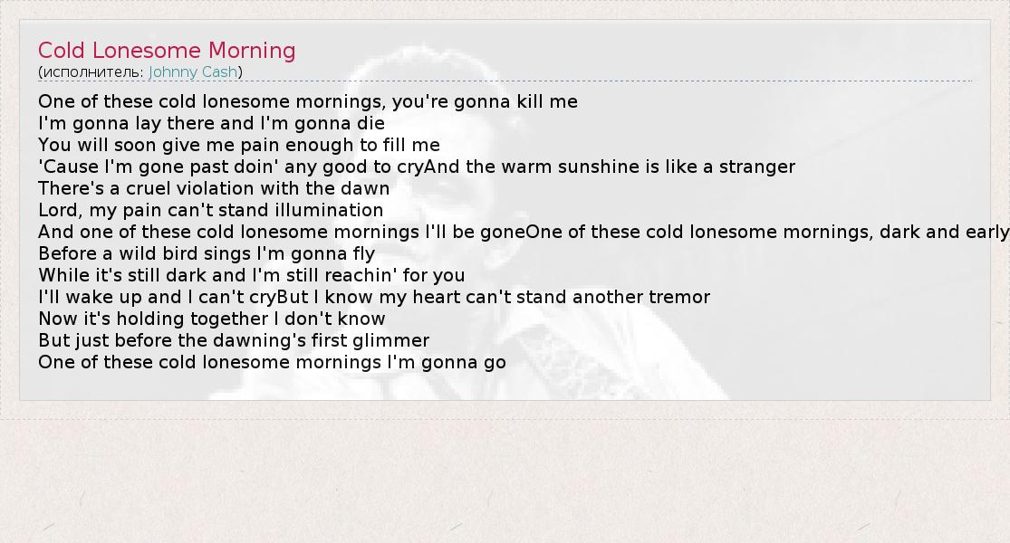 А как ты думаешь, о чем песня "Cold Lonesome Morning" ?