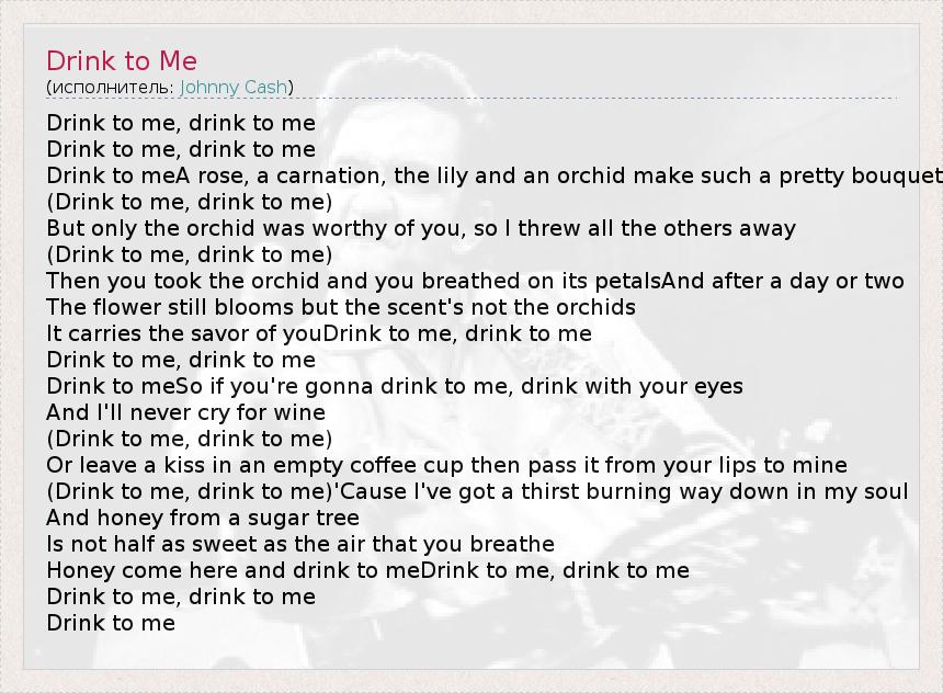 А как ты думаешь, о чем песня "Drink to Me" ?
