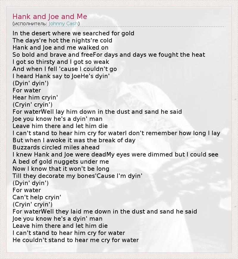 А как ты думаешь, о чем песня "Hank and Joe and Me" ?