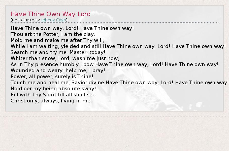 А как ты думаешь, о чем песня "Have Thine Own Way Lord" ?