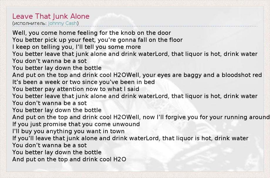 А как ты думаешь, о чем песня "Leave That Junk Alone" ?