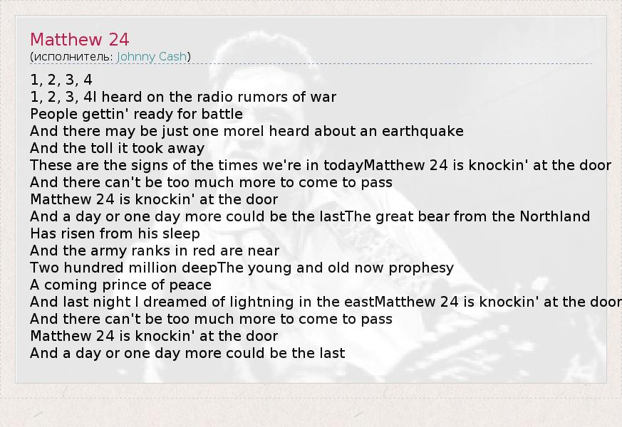 А как ты думаешь, о чем песня "Matthew 24" ?