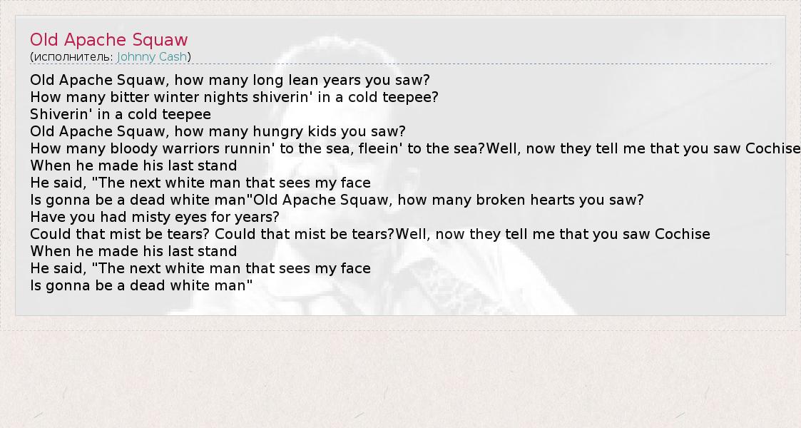 А как ты думаешь, о чем песня "Old Apache Squaw" ?