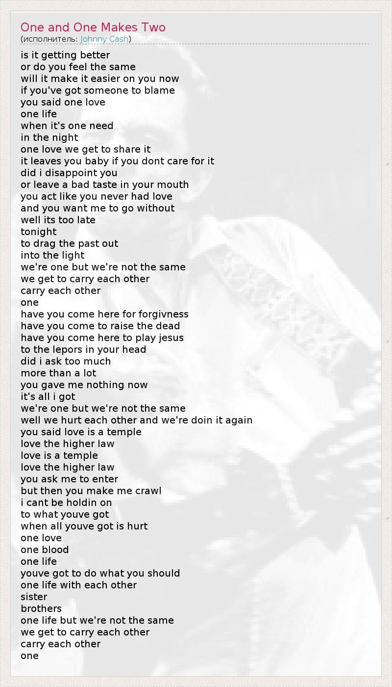 А как ты думаешь, о чем песня "One and One Makes Two" ?