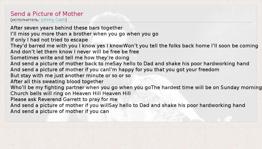 А как ты думаешь, о чем песня "Send a Picture of Mother" ?