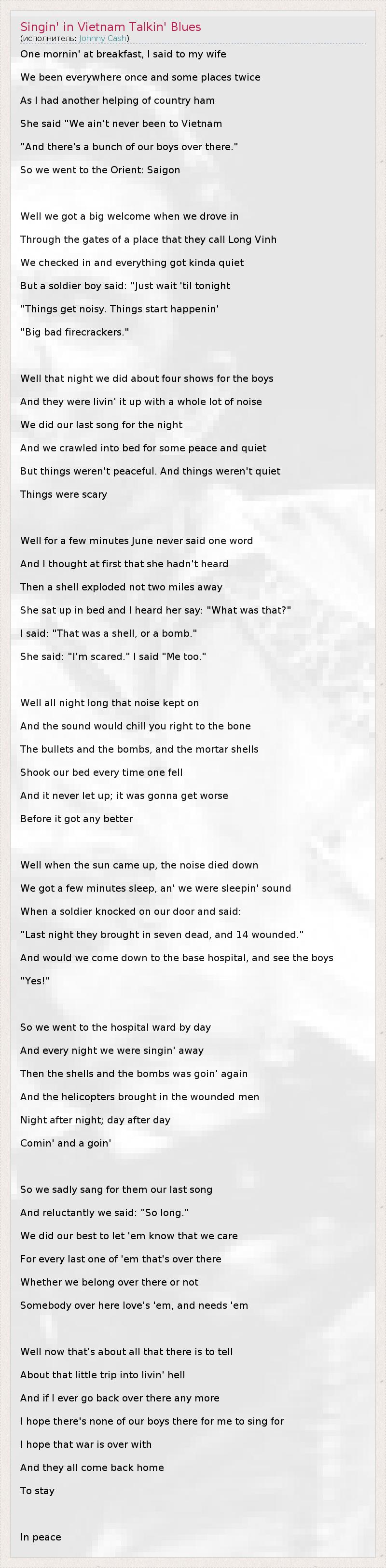 ГлавнаяИсполнителиJohnny CashSingin' in Vietnam Talkin' Blues