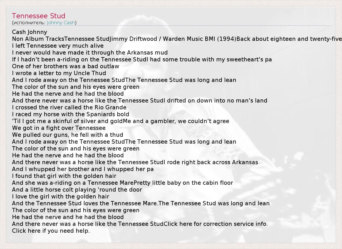 А как ты думаешь, о чем песня "Tennessee Stud" ?