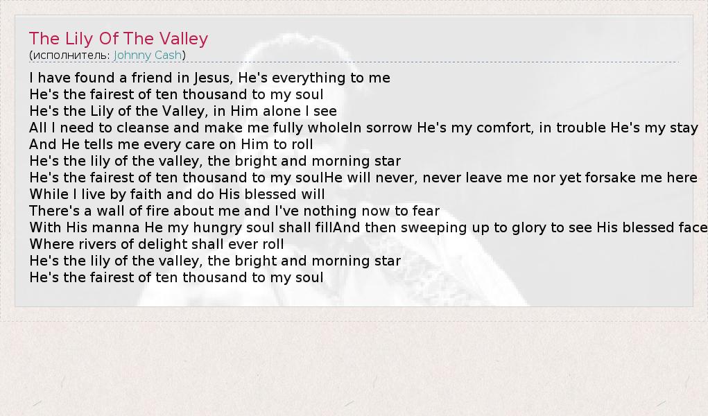 А как ты думаешь, о чем песня "The Lily Of The Valley" ?
