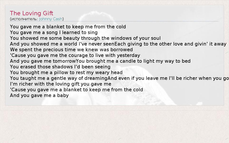 А как ты думаешь, о чем песня "The Loving Gift" ?