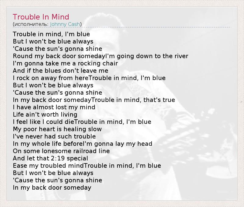 А как ты думаешь, о чем песня "Trouble In Mind" ?
