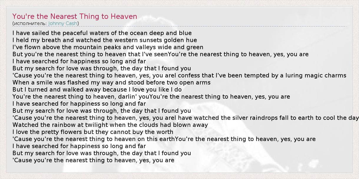 А как ты думаешь, о чем песня "You're the Nearest Thing to Heaven" ?