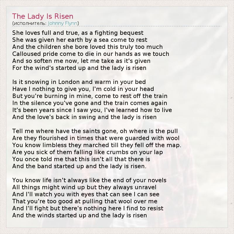 А как ты думаешь, о чем песня "The Lady Is Risen" ?