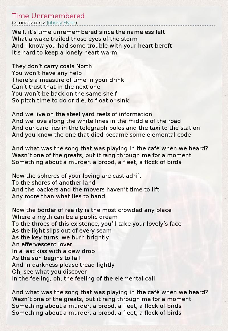 А как ты думаешь, о чем песня "Time Unremembered" ?