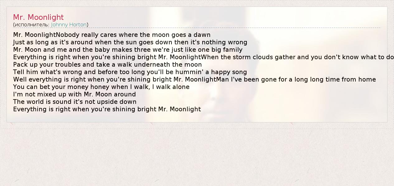 Mr. MoonlightNobody really cares where the moon goes a dawn