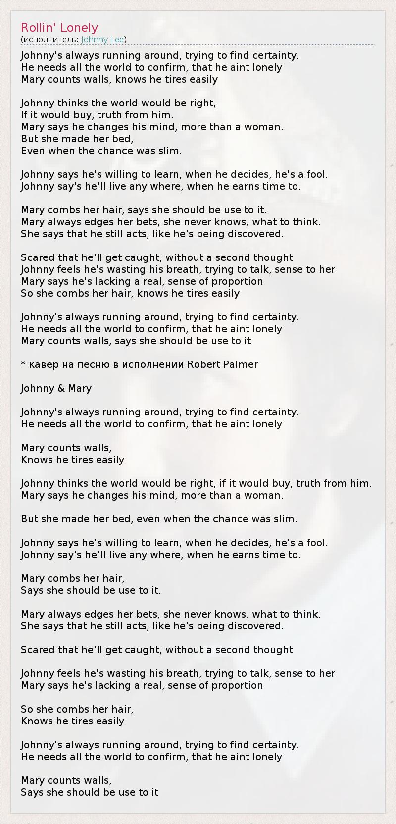 А как ты думаешь, о чем песня "Rollin' Lonely" ?