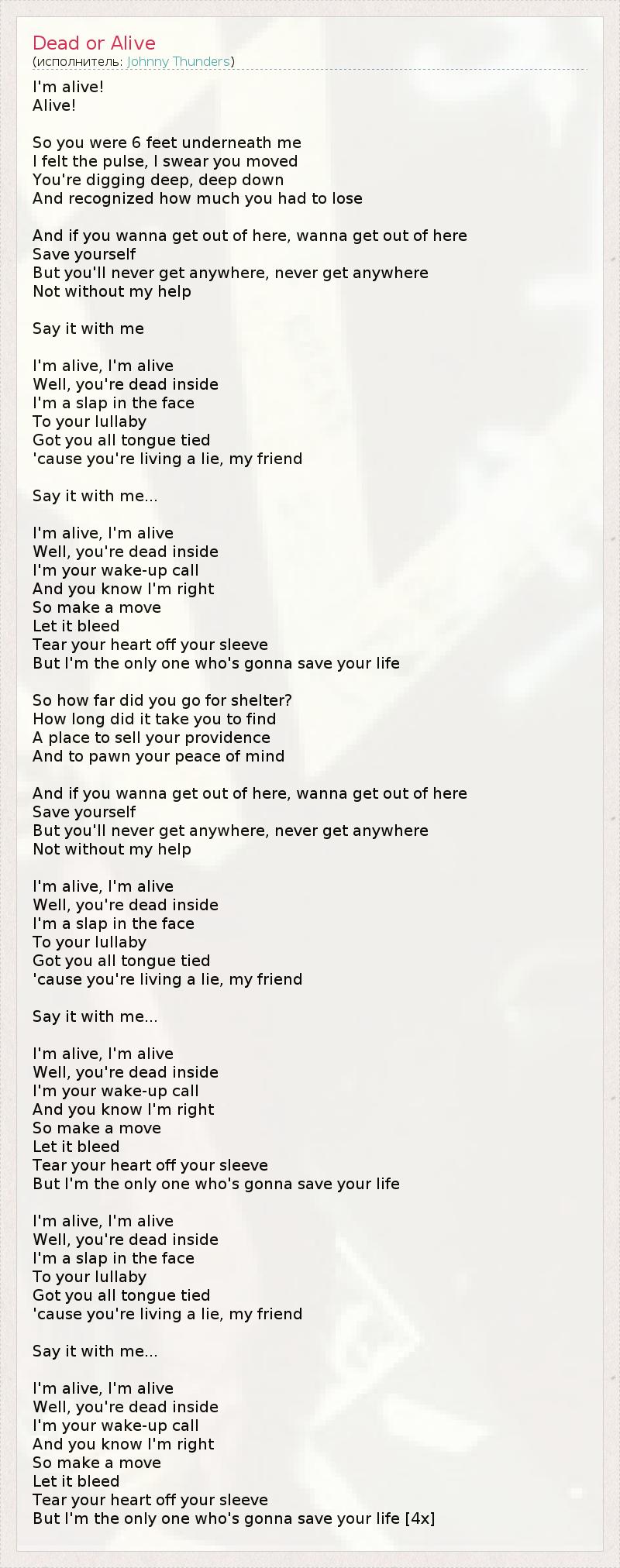 А как ты думаешь, о чем песня "Dead or Alive" ?