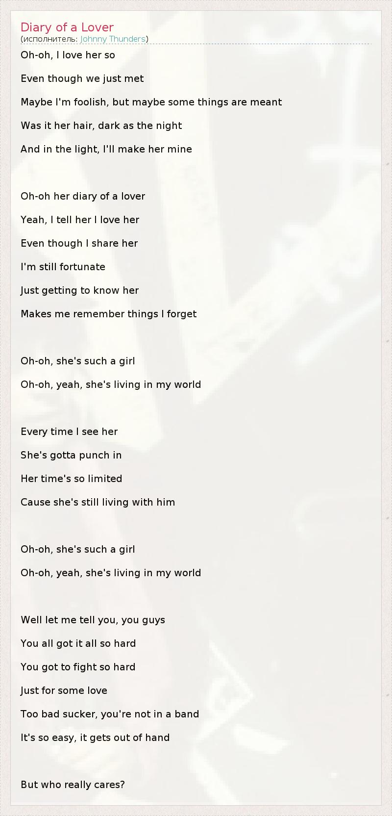 А как ты думаешь, о чем песня "Diary of a Lover" ?