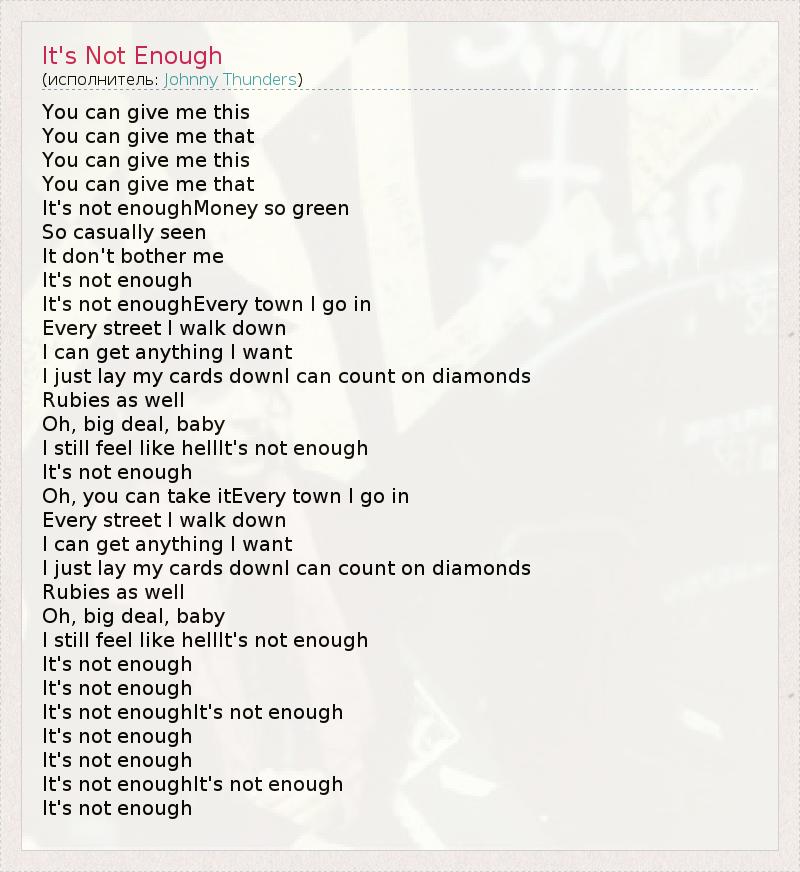 А как ты думаешь, о чем песня "It's Not Enough" ?
