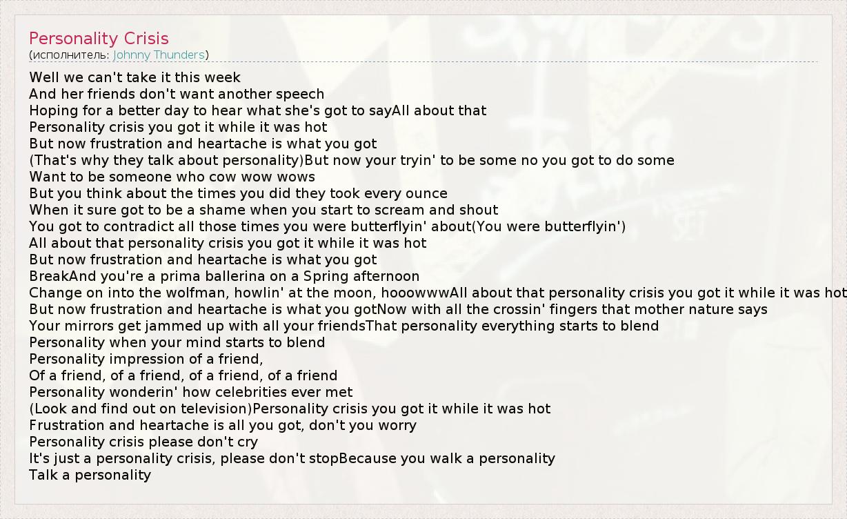 А как ты думаешь, о чем песня "Personality Crisis" ?