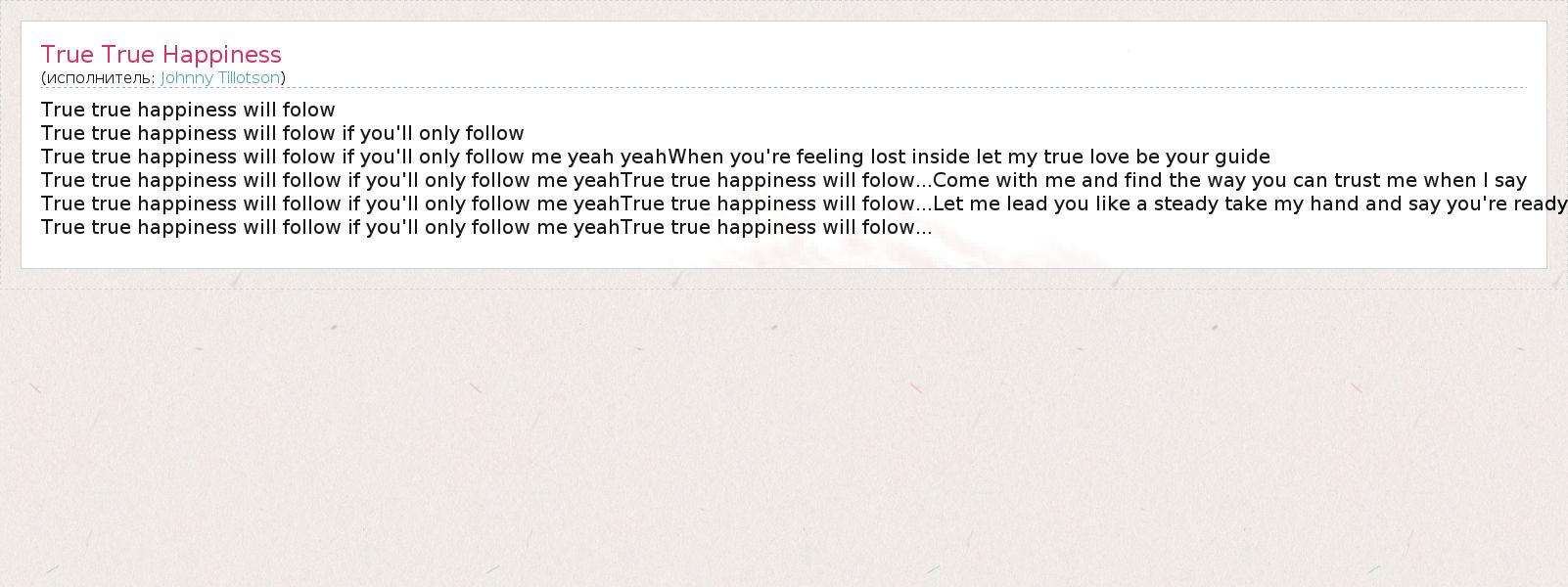 True true happiness will follow if you'll only follow me yeahTrue true happiness will folow...