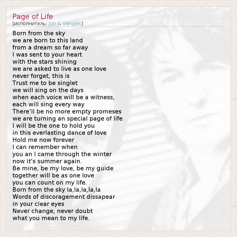 А как ты думаешь, о чем песня "Page of Life" ?