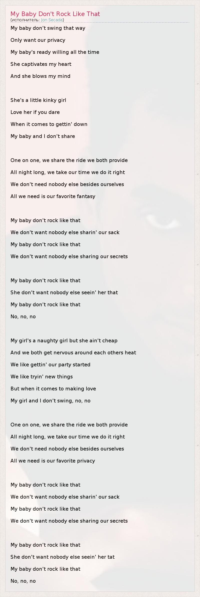 А как ты думаешь, о чем песня "My Baby Don't Rock Like That" ?