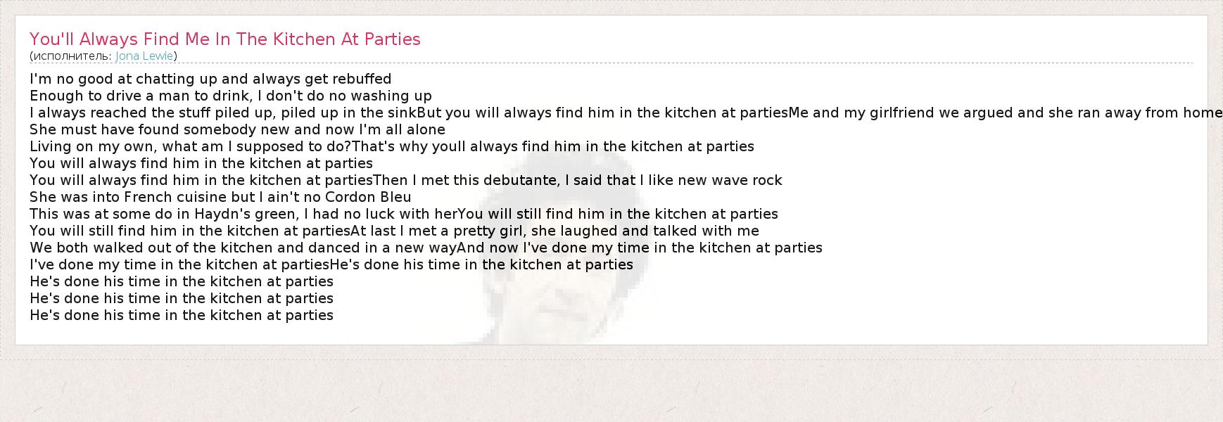ГлавнаяИсполнителиJona LewieYou'll Always Find Me In The Kitchen At Parties